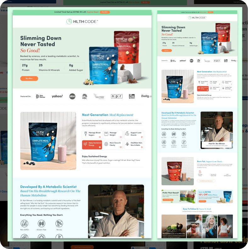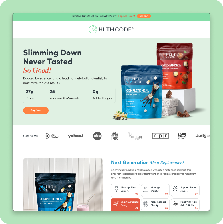 HLTH Code delivers balanced, science-backed meal replacements supporting holistic optimal health, weight management, and daily nutrition.