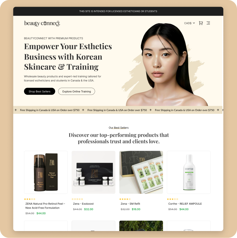 Wholesale beauty products and expert-led training tailored for licensed estheticians and students in Canada & the USA.